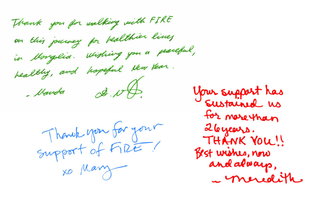 The past year has been one of extremes for FIRE. We experienced unprecedented recognitions and opportunities to share our work in Mongolia on the global stage, while also making significant progress in developing new programs and partnerships. At the same time, we faced unexpected obstacles and delays. Like many nonprofit organizations, the U.S. federal government’s changes created new challenges. Still, FIRE did what we do best—we got creative, drew on our tenacity, and persevered. We ended the year stronger and on the other side of all challenges.